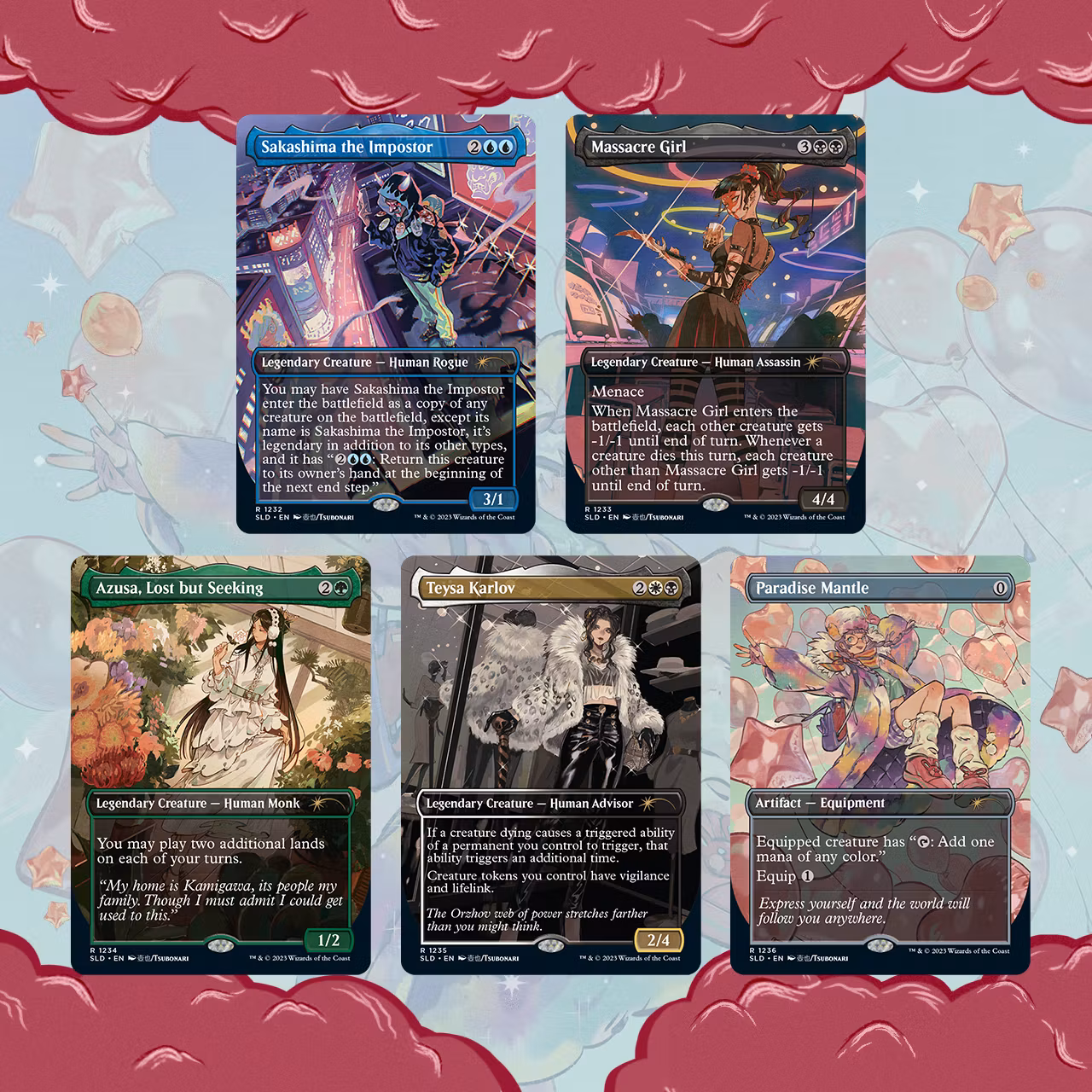 Magic the Gathering: Secret Lair Drop: City Styles 1 395 kr Elegans har aldrig varit så uppnåeligt. Fem vackra kort med art från Tsubonari. Produkten är tyvärr slut i lager. :( Dela Information Vogue. Couture. Tidlöshet. Elegans har aldrig varit så uppnåeligt. Fem vackra kort med art från Tsubonari.1x Borderless Sakashima the Impostor1x Borderless Massacre Girl1x Borderless Azusa, Lost but Seeking1x Borderless Teysa Karlov1x Borderless Paradise Mantle